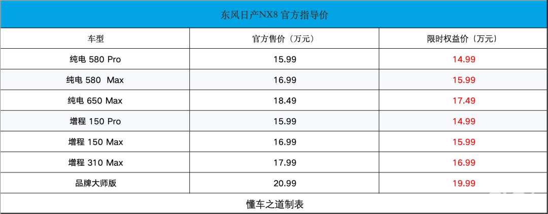 【懂车之道产品】近日,懂车之道获悉,广州·白云,4月8日,我们从官方获悉,东风日产NX8正式发布上市,共推出7款车型,官方指导价15.99-18.49万元,限时...