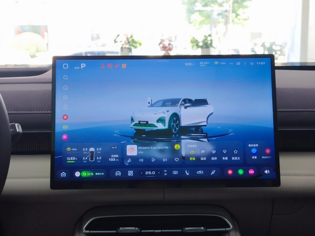 尚界H5搭载的是HarmonyOS 4.0鸿蒙智能座舱,跟问界系列、智界系列保持一致,内置麒麟车规级芯片,支持超级桌面、多屏联动、车载KTV等,常用功能都很齐全,上手无难度。