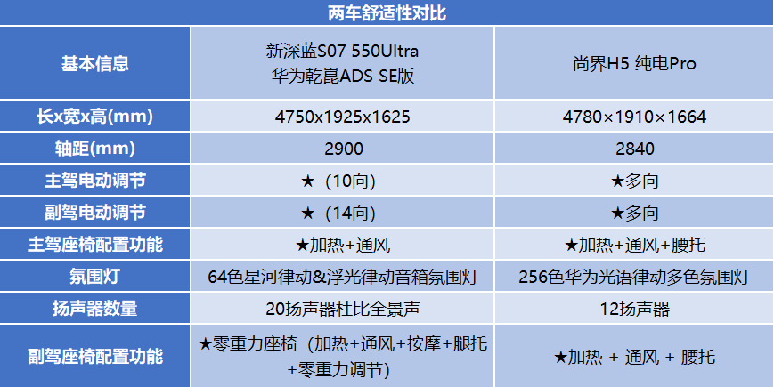 舒适性比拼:全新深蓝S07提供零重力座椅,尚界H5还有提升空间