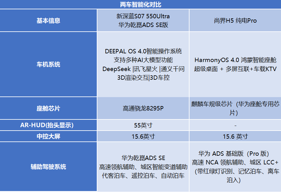 智能化比拼:全新深蓝S07标配乾崑ADS SE,尚界H5提供2套方案