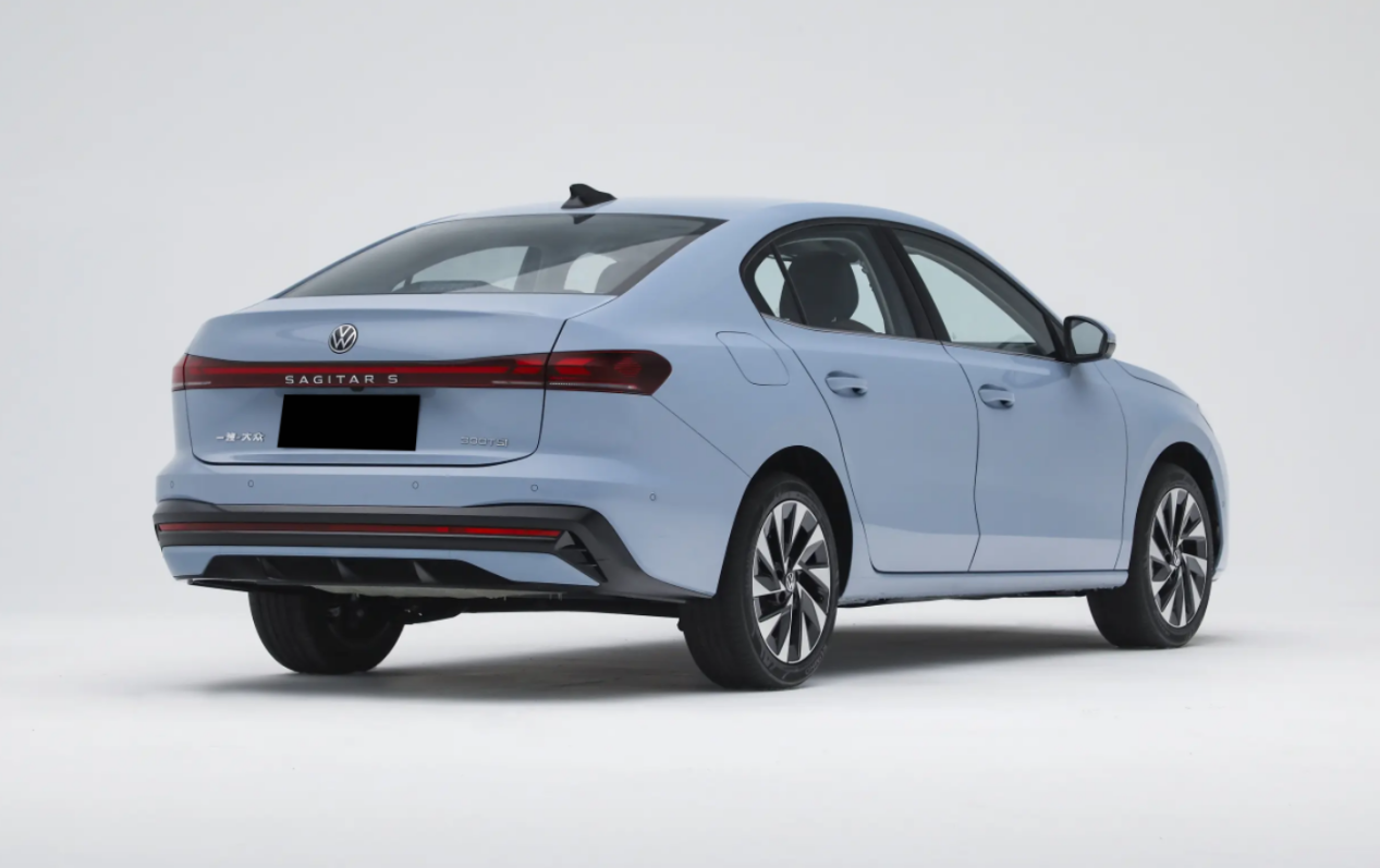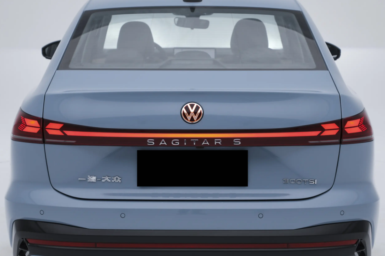 车尾,贯穿式尾灯组成为了亮点之一,中部是平直灯带,带字母车标,左右两侧的红色色块呈“X”形。尾灯上方的大众车标支持点亮,小鸭尾略微上翘,后包围穿插红色贯穿饰条,底部覆盖车身同色护板,让尾部层次感更加饱满。