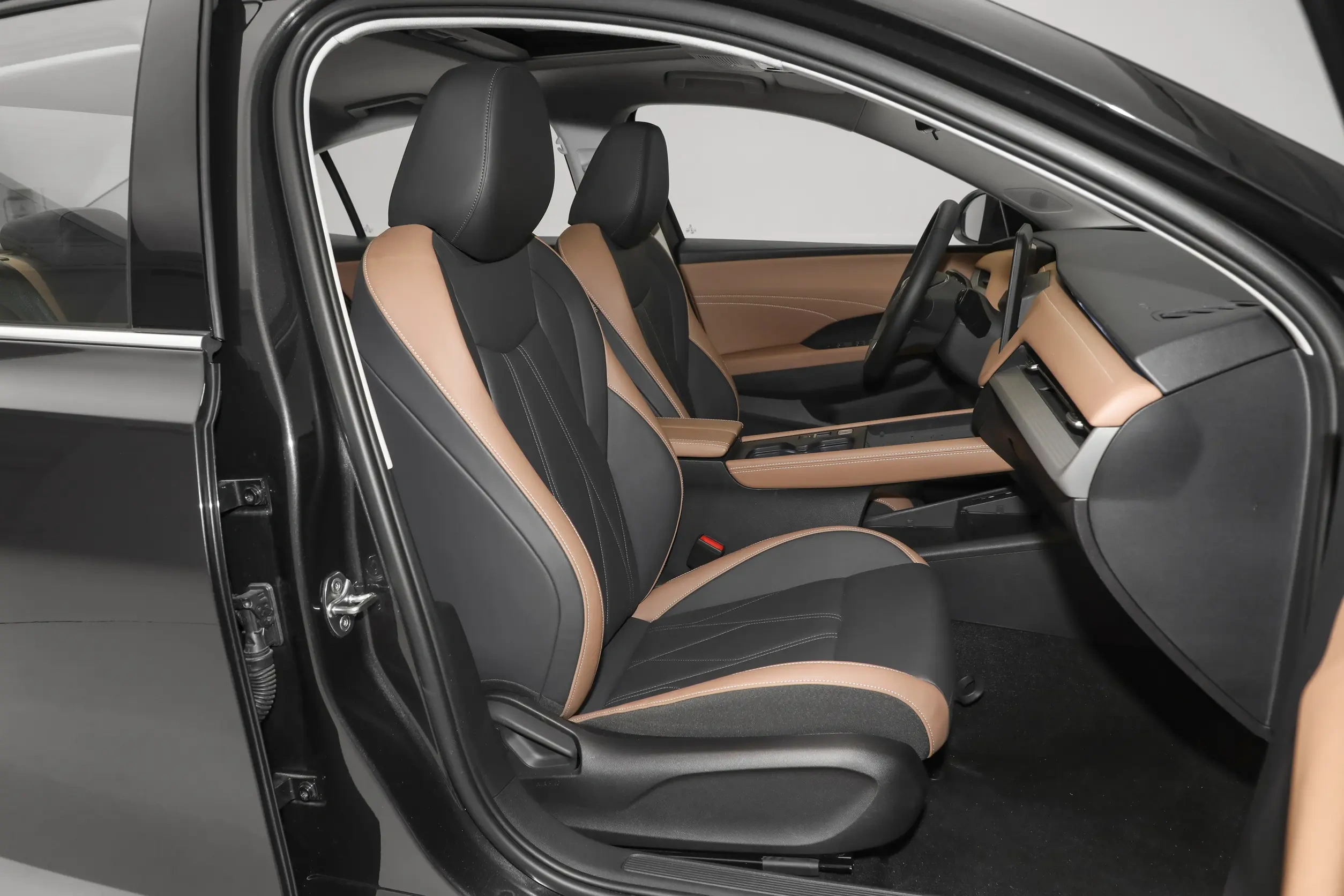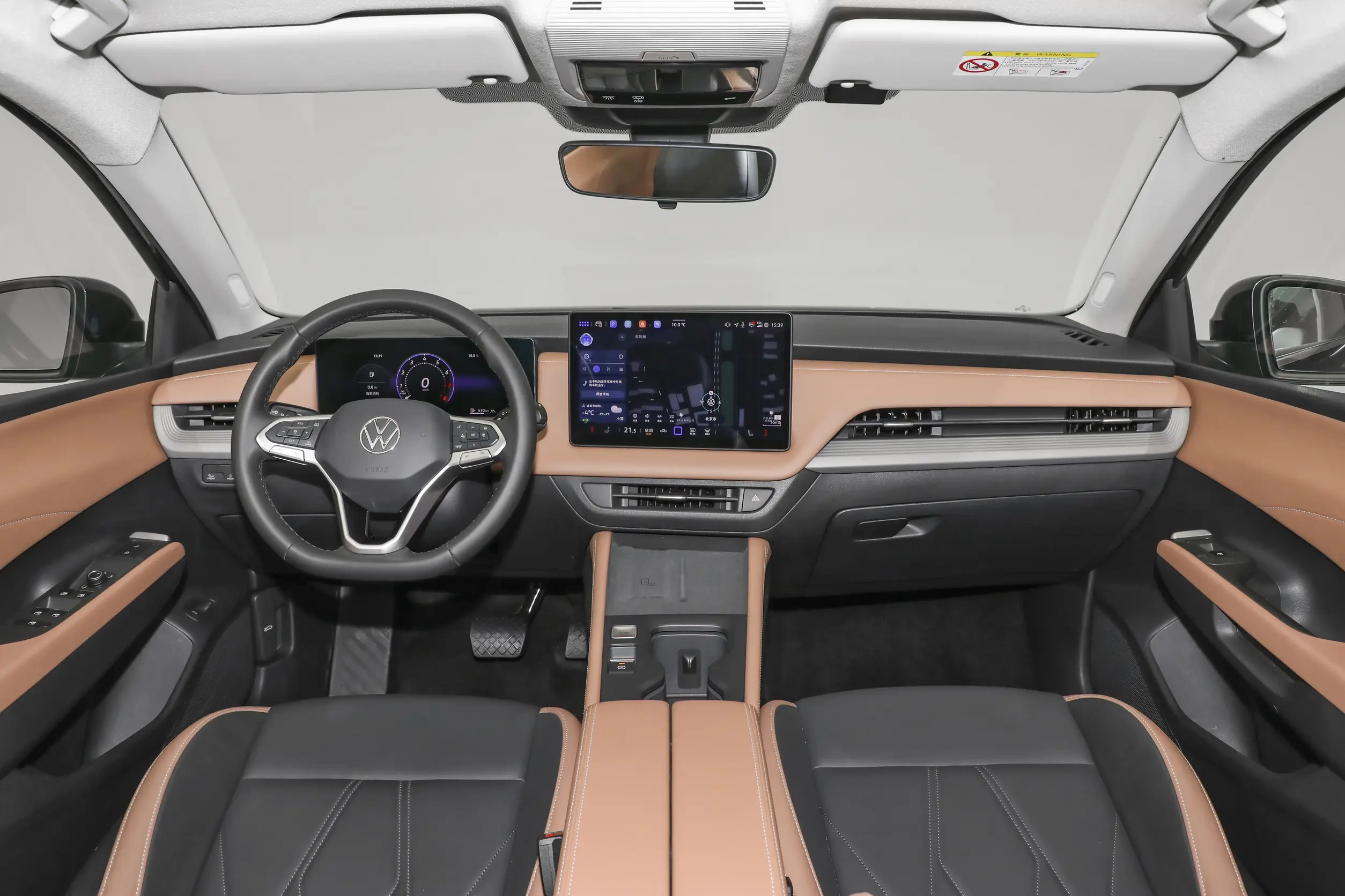 车内,速腾S采用当下新能源车的流行设计,配备12.9英寸悬浮式中控屏、10.25英寸液晶仪表屏、三辐式方向盘以及电子怀挡,空调出风口错落分布,副仪表板仅有少量实体按键,座椅采用双色拼接,支持主驾6向、副驾4向调节。