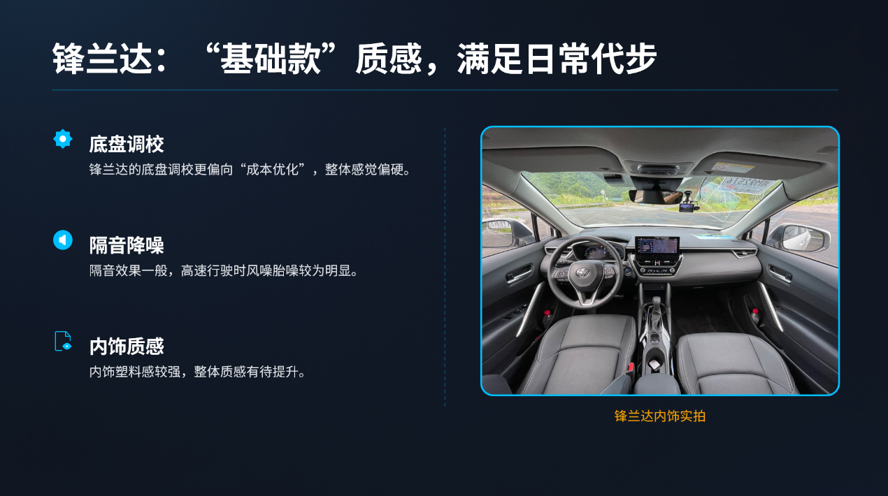 锋兰达的底盘就偏硬,过井盖时 “哐当” 一声,噪音也大,跑长途久了腰都酸。这种 “又舒服又稳” 的底盘质感,开 HR-V 时真有种 “捡到宝” 的感觉,完全不像同级别车能有的表现。这种又舒服又好开的底盘质感,比锋兰达的扭力梁悬架高级不少,完全不像这个价位该有的表现。锋兰达就跟卡罗拉、雷凌类似的感觉,甚至还更不好,因为锋兰达是SUV,用轿车的底盘调校,不是很稳当。