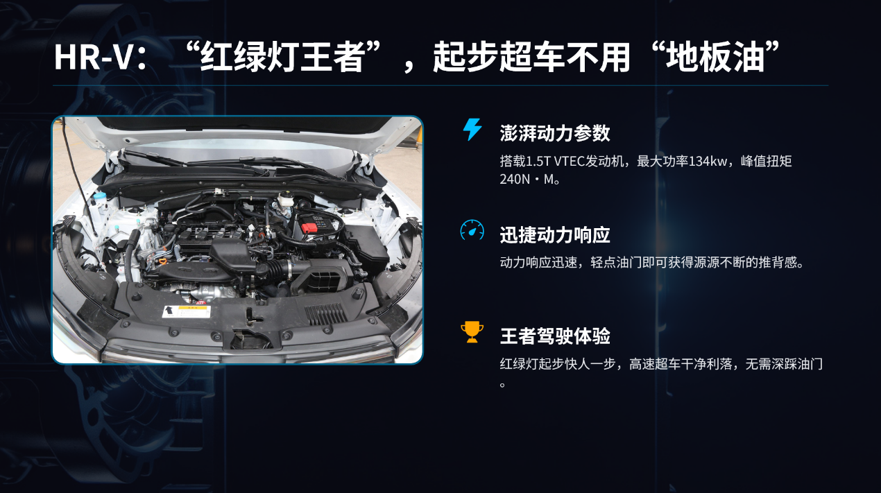 体验下来,HR-V 的 1.5T 发动机真不是吹的,红绿灯起步,轻点油门车就 “窜” 出去了,比旁边的车快半个车头,不用像开锋兰达那样踩深油门等动力 “醒过来”。在高速上想超货车,HR-V 深踩油门,转速一提,动力 “呼” 地就上来了,超车干净利落。