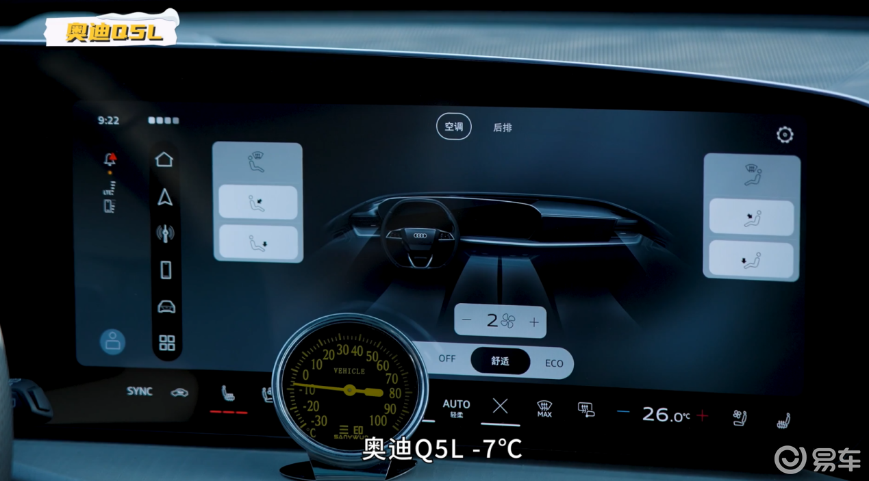 作为对比,在启动并开启空调20分钟后,Q5L的车内温度为零下七度、Model Y车内温度为零上一度。