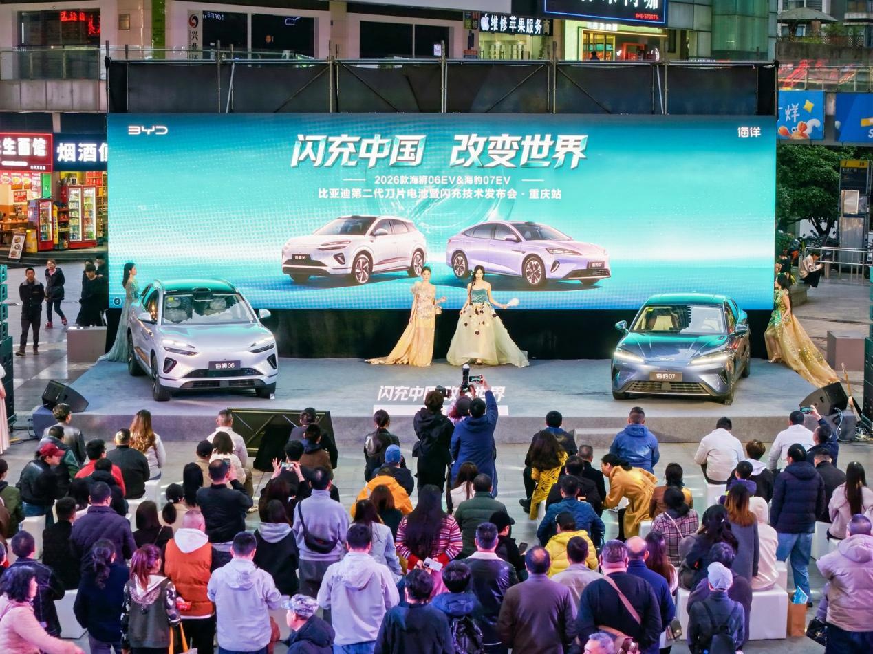 从深圳首发到重庆落地,比亚迪第二代刀片电池 & 闪充技术的规模化应用,不仅是自身技术实力的彰显,更将重构新能源汽车补能生态,推动行业从 “续航焦虑” 向 “补能自由” 跨越。对重庆市场而言,山城复杂路况与冬季湿冷气候,对车辆续航、充电效率提出更高要求。2026 款海狮 06EV、海豹 07EV 的上市,结合本地闪充站网络布局,将彻底解决山城用户 “冬季充电难、爬坡续航虚” 的痛点,同时为家庭出行、都市通勤提供更高效、更舒适的选择。