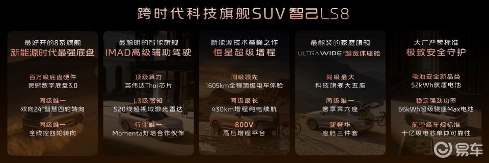 作为新能源技术的巅峰之作,智己LS8搭载的恒星超级增程,不仅是新增程,更是超级增程,全程都能享受顶级电车的澎湃动力、极致静谧、超低能耗。智己LS8拥有同级领先1605km (CLTC)综合续航,百公里油电综合折算能耗低至2.54L,从上海开到西安全程都无需补能;更无惧高原,任何海拔都是性能猛兽,彻底解决油车“高反”与传统增程“亏电一条虫”的顽疾。