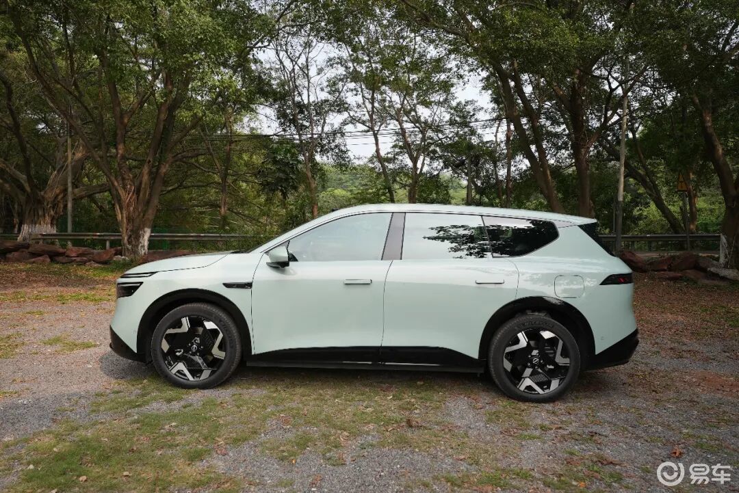 来到车身侧面,采用极简化一体式设计,隐藏式水切,低面差设计,侧面造型十分平滑。轮胎规格方面,提供19英寸和20英寸两种供用户选择。另外,增程动力车型位于车身右后侧的加油口。车身尺寸方面,新车的长宽高分别为4870/1920/1680mm,轴距为2917mm。