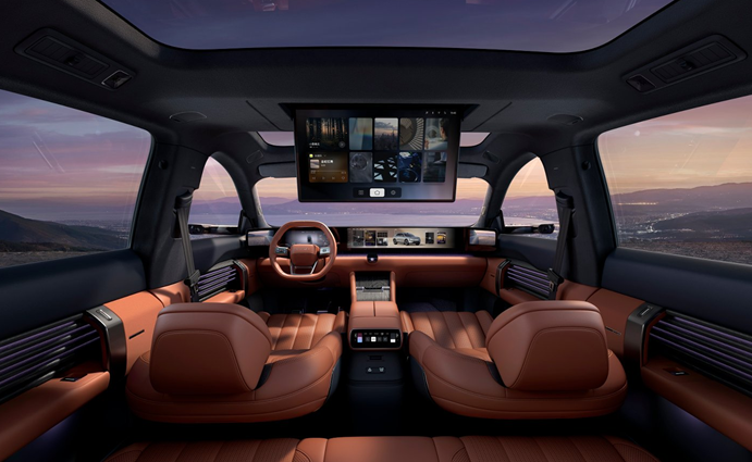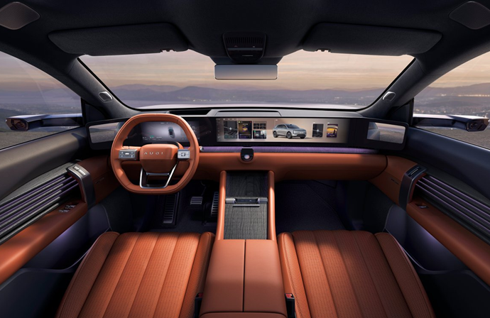同时,奥迪 E7X的座舱还极具科技感,例如其不仅配备有21.4英寸QD Mini LED星空屏、中控屏和后排吸顶屏,并且支持互不干扰的沉浸式多屏交互生态体验,还内置有全新升级的奥迪助手2.0依托AI大模型,既能实现多意图识别、跨轮次上下文关联,又可根据行车场景动态调整语调和语速,为用户带来拟人化、有温度的智能交互体验。