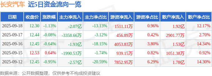 证券之星消息,截至2025年9月18日收盘,长安汽车(000625)报收于12.3元,下跌1.13%,换手率1.54%,成交量127.56万手,成交额15.8...