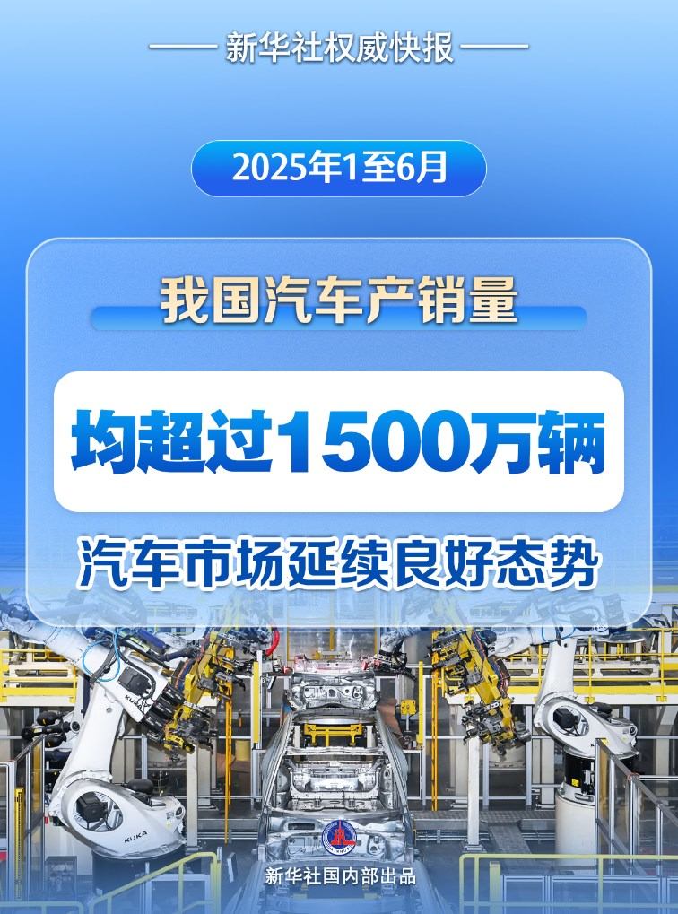 新华社北京7月10日电(记者唐诗凝)中国汽车工业协会10日发布的数据显示,2025年上半年我国汽车产销量首次双超1500万辆,均同比实现两位数增长,汽车产业活...