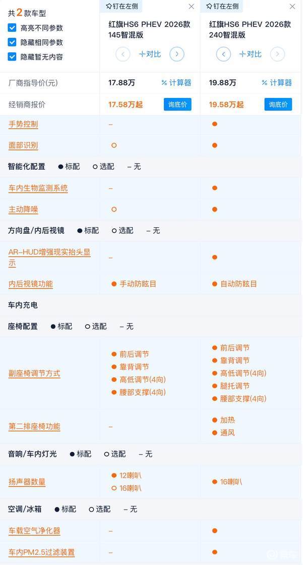 我们先来看标配145智混版和中配240智混版,都有哪些差异。