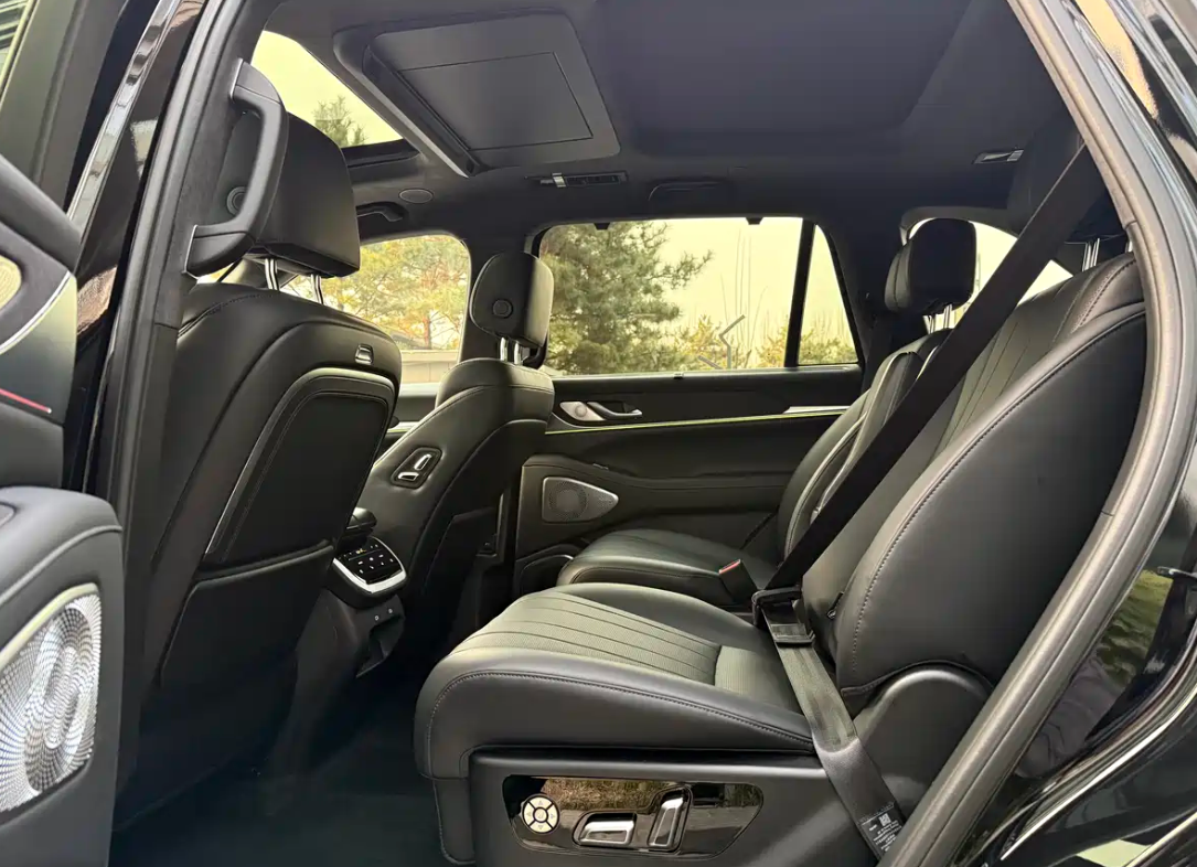 值得一提的是,蓝山智能进阶版还提供黑武士车型可选,整个外观,包括轮毂、车窗饰条等全面黑化,更具炫酷、运动的感觉,更符合年轻群体的偏好。车身尺寸方面,其长宽高依旧为5156/1980/1805mm,轴距为3050mm,在同级中属于偏大气的一类。