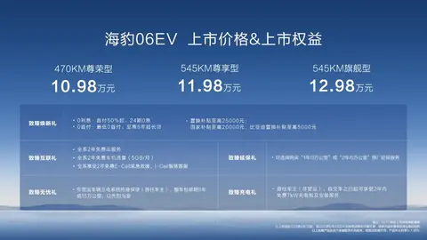 6月7日,比亚迪海洋网潮美质选轿跑海豹06EV(图片|配置|询价)于重庆车展上市。新车共推出3款配置,售价10.98万-12.98万元。并推出购车享致臻焕新礼、...