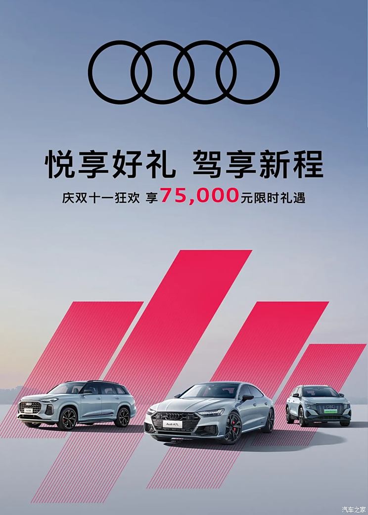 [车讯 资讯] 11月5日,我们从官方获悉,上汽奥迪推出至高75000元限时礼遇。活动时间为2024年11月1日-11月11日。活动期间可免费领取一张2...