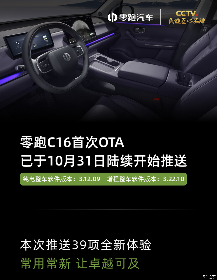 [车讯 资讯] 日前,零跑C16(参数|询价)开启首次OTA升级,本次升级新增APA语音泊车/无麦K歌/坡道辅助影像等22项新功能,此外语音控制系统、智...